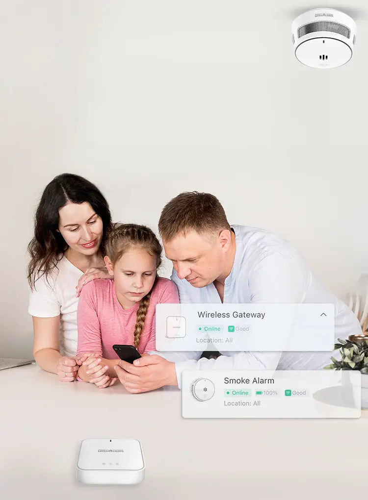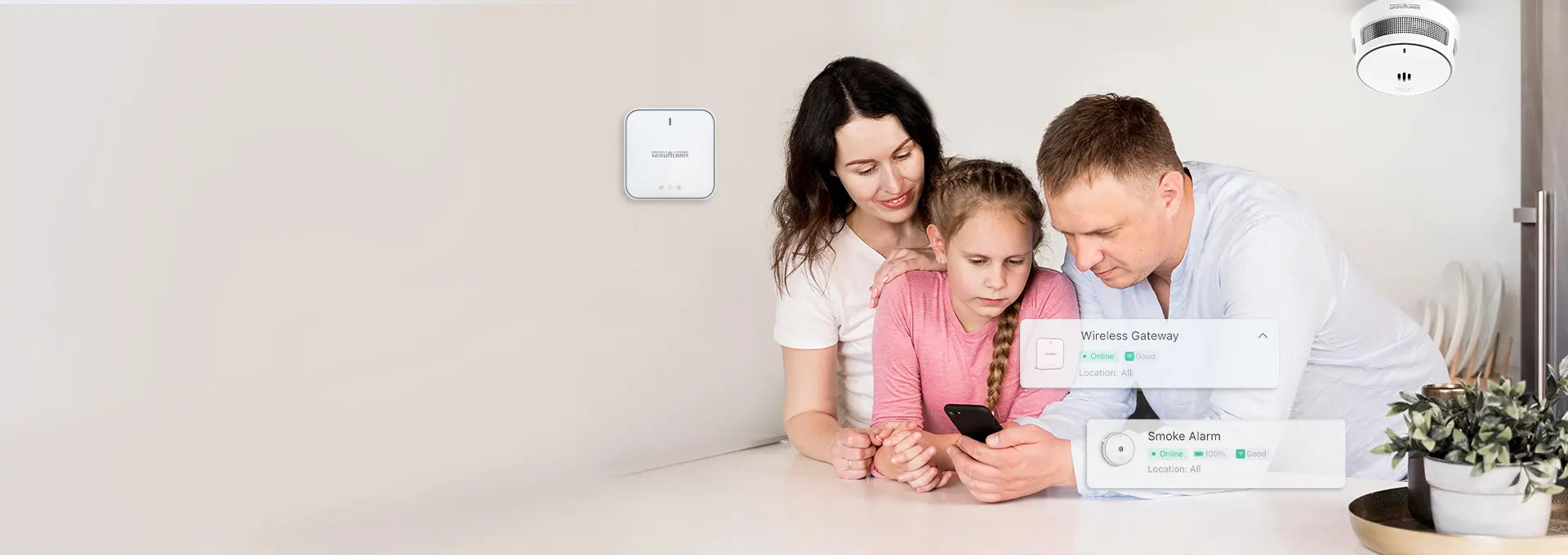 Gateway and 3 Smoke & 1 Heat Alarm & 1 Temperature Sensor