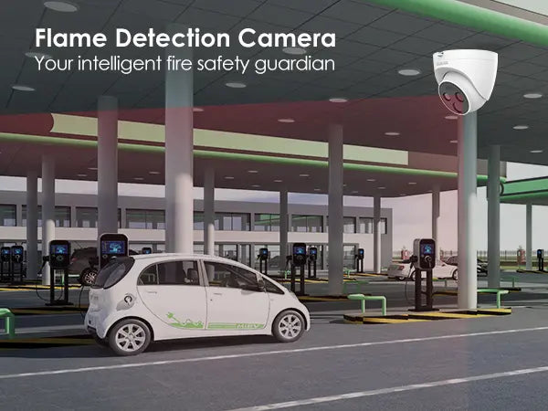 The product has the ability to detect flame and abnormal temperature based on thermal sensor, which is designed for fire detection in SMB scenarios such as small warehouses, garages and etc.