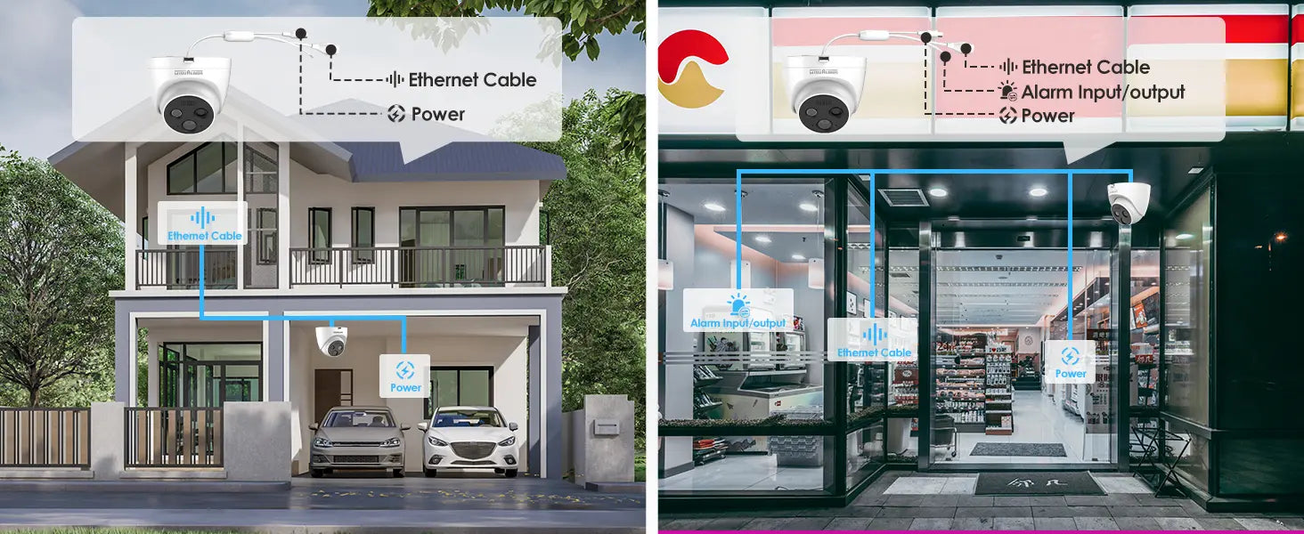 • Alarmverknüpfung: Kann mit Geräten von Drittanbietern verknüpft werden