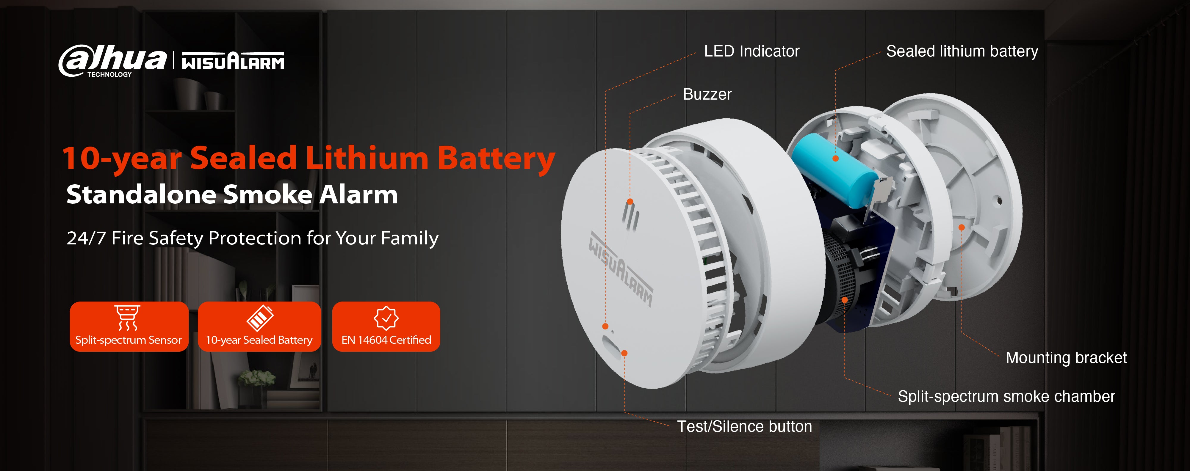 De standalone rookmelder is ontworpen om de rookconcentratie continu te monitoren. Dankzij de nieuwe split-spectrumsensor en een ingebouwde zoemer met hoog volume reageert hij snel en wordt hij zeer gevoelig, met stabiele prestaties en een laag vals alarm. Zodra de omringende rookconcentratie de alarmwaarde bereikt, wordt er onmiddellijk een visueel en hoorbaar alarmsignaal uitgezonden om de gebruiker eraan te herinneren onmiddellijk maatregelen te nemen.