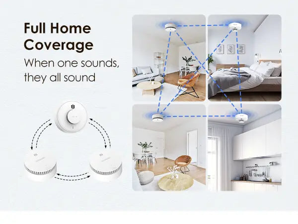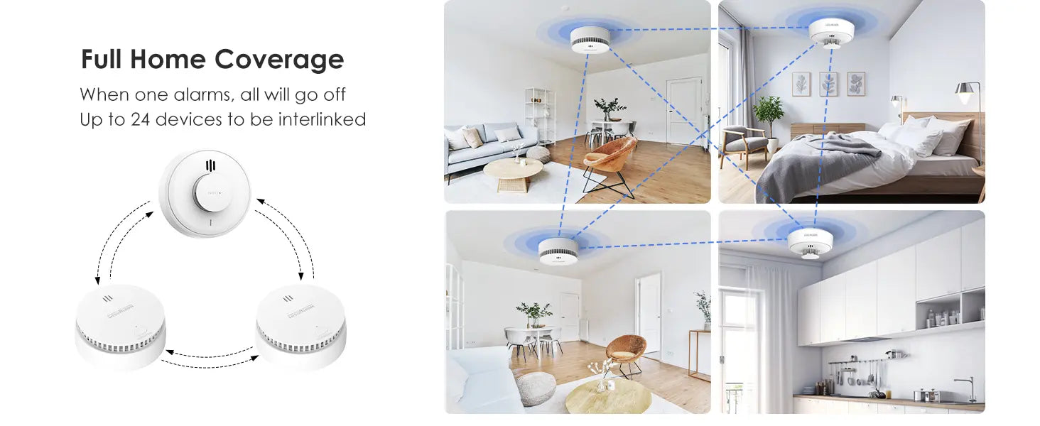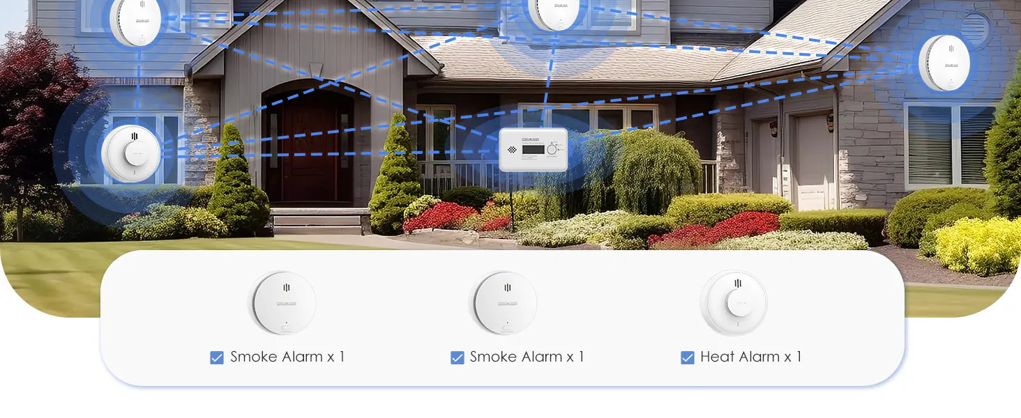 When one detector in the system detects smoke, heat, or carbon monoxide, it will send a signal to all other interconnected units, triggering them to alert you simultaneously. This feature provides an early warning throughout your home, ensuring that everyone is alerted in case of an emergency, no matter where they are.