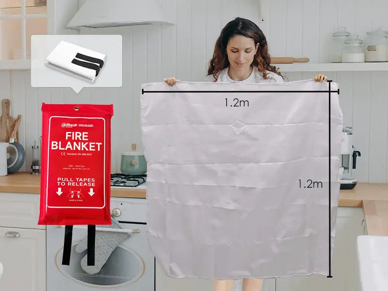 The fire blanket measures 1.2m x 1.2m, providing ample coverage to effectively extinguish flames while ensuring ease of handling and storage.