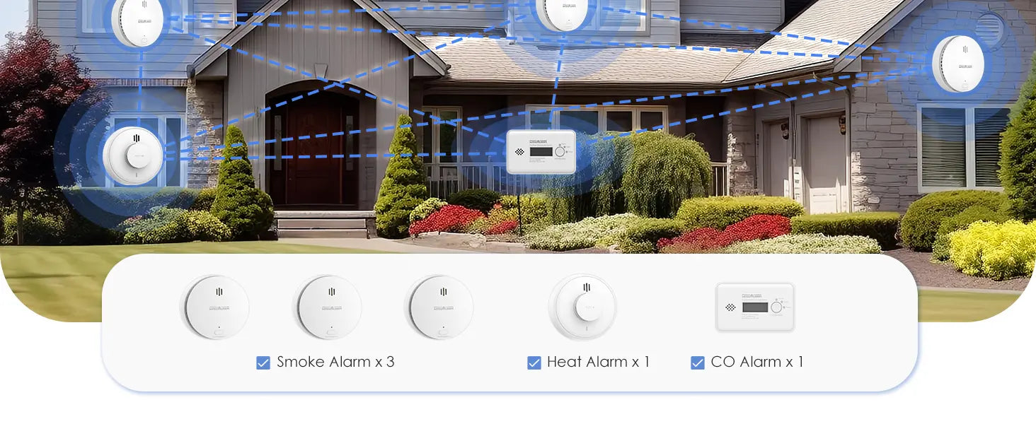 Worry-free of connecting smoke detectors and heat detector kit, Wisualarm already set them up, when you get them,you can directly test it and use it in situation.
