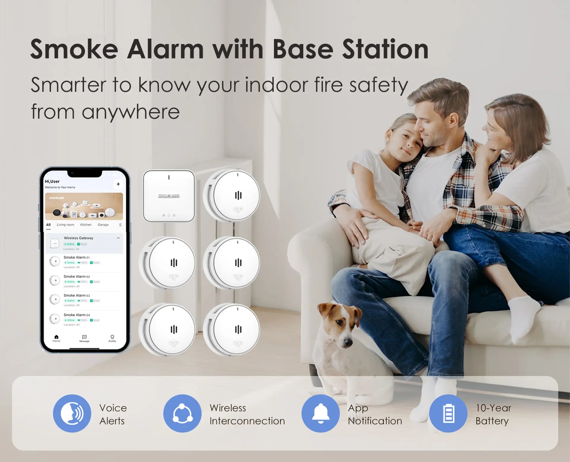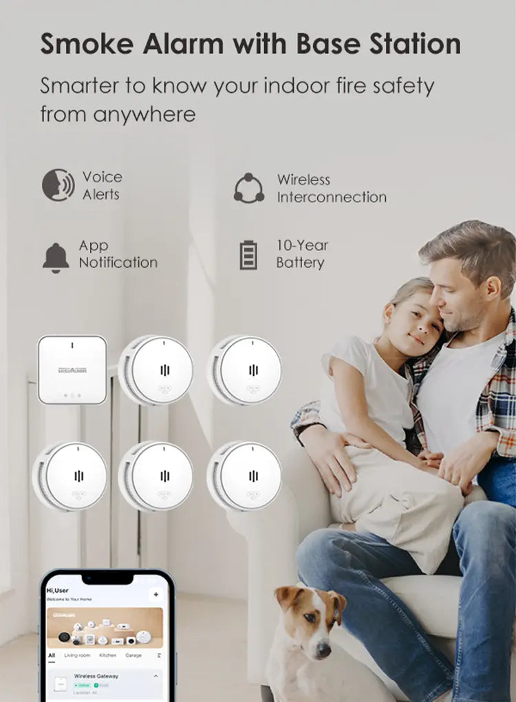 • Your smart home security: The base station supports up to 24 devices, including smoke detectors , CO alarm,  heat detector,  thermo-hygrometer and water detector.