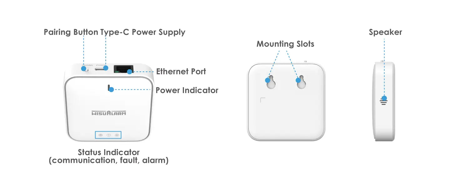 Gateway is the central product of the wireless interconnected network, and it can bring all your detectors online. When you go outside, you will also receive the notification via your smart phones.