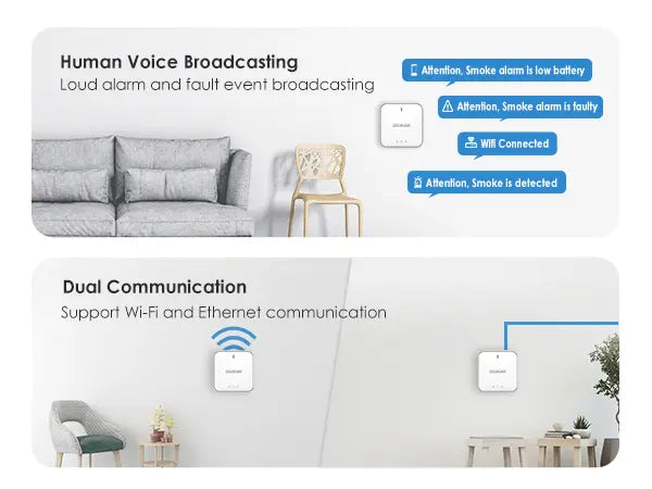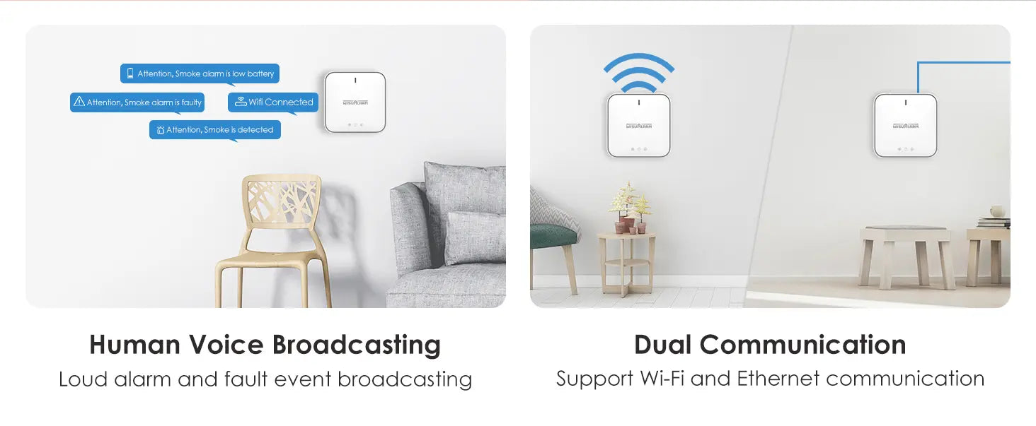 A1 Class Fire Detector: Integrating high-precision thermistor and intelligent algorithm, the alarm is activated at temperatures between 54°C and 65°C. Fewer false alarms caused by dust and smoke, especially in the kitchen.