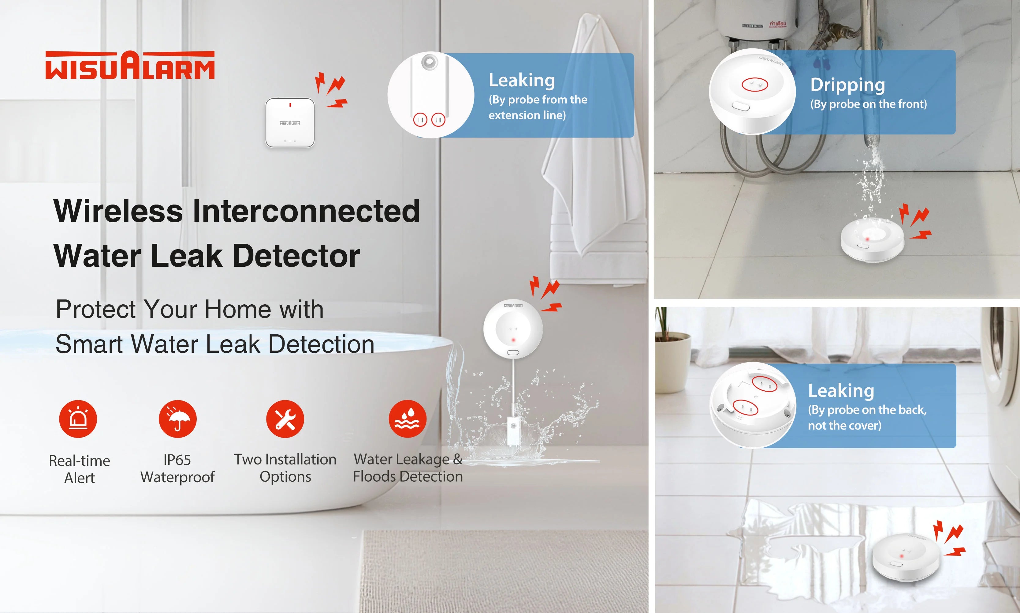 Whether you need it for your home, office, or outdoor adventures, it adapts seamlessly to different environments. In the kitchen, it helps monitor spills during cooking, while in the laundry room, it swiftly detects leaks from washing machine.